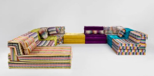 Deep green trees greet you on the patio, and because in my mind I live here year-round and can tend plants, they are carried through inside, blurring the distinction between interior and exterior. Each room steps outside. The living room is landscaped in Missoni fabrics on Mah Jong, the modular sofa by Roche Bobois. Sprawled, stacked, and juxtaposed to make any composition, it’s like a visual collage on the floor. Blues, saffron, rust, reds, pinks, and greens, you might think you stepped into a Moroccan riad. You will want to take off your shoes.