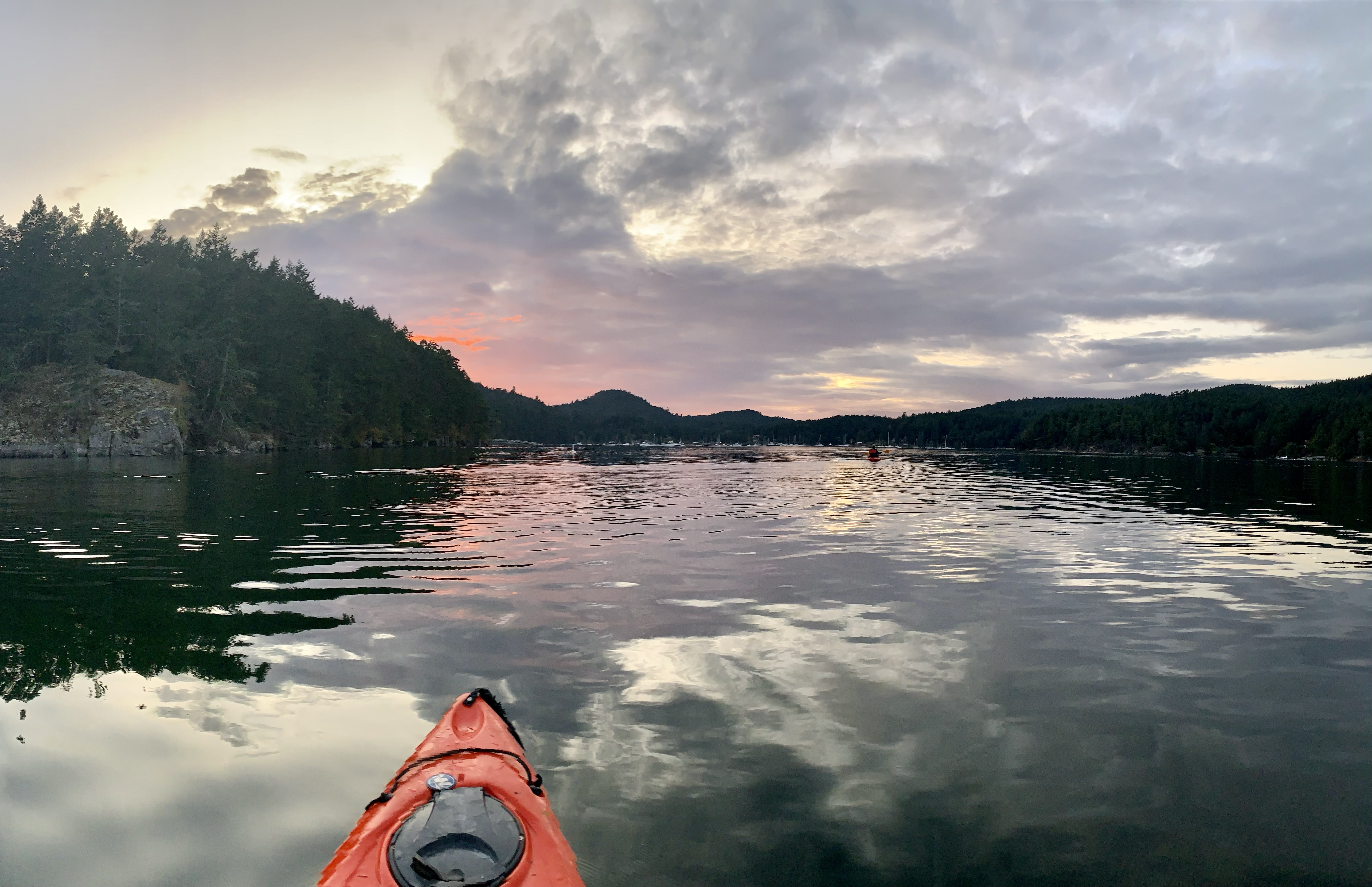We found a waterfront house on San Juan Island and lived on the boat in the marina while our home was being remodeled. On our bay there are no ferries, no commercial boats of any kind. Only residents quietly coming and going in kayaks, canoes, and small fishing boats. We see our neighbors paddling by more often than we do on the shore.