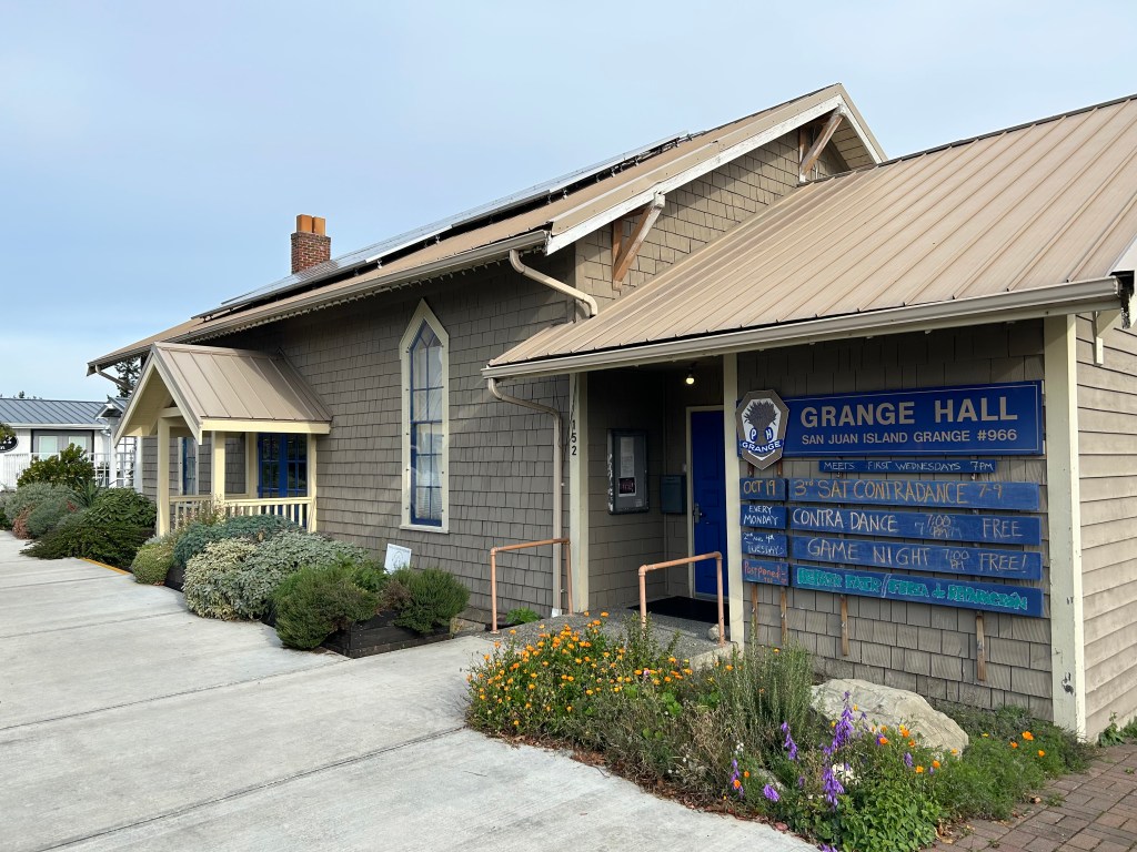 The mission statement of San Juan Island Grange #966 is “To support a resilient community of growers, makers, and keepers; to foster social and political engagement; and to maintain our hall as a home for celebrations and programs.” Today this is expressed in gamer nights, workshops, meetings, Repair Fairs, and Monday Night Contra Dance—where my neighbor is a regular. Back in the day, the social isolation of farmers is something the Grange always addressed. In the advancement of agriculture, the Grange valued the needs of family members. Halls were designed with a stage for musicians, an open floor for dancing, and benches along the walls. Meeting, greeting, courting, socializing, and raising families.