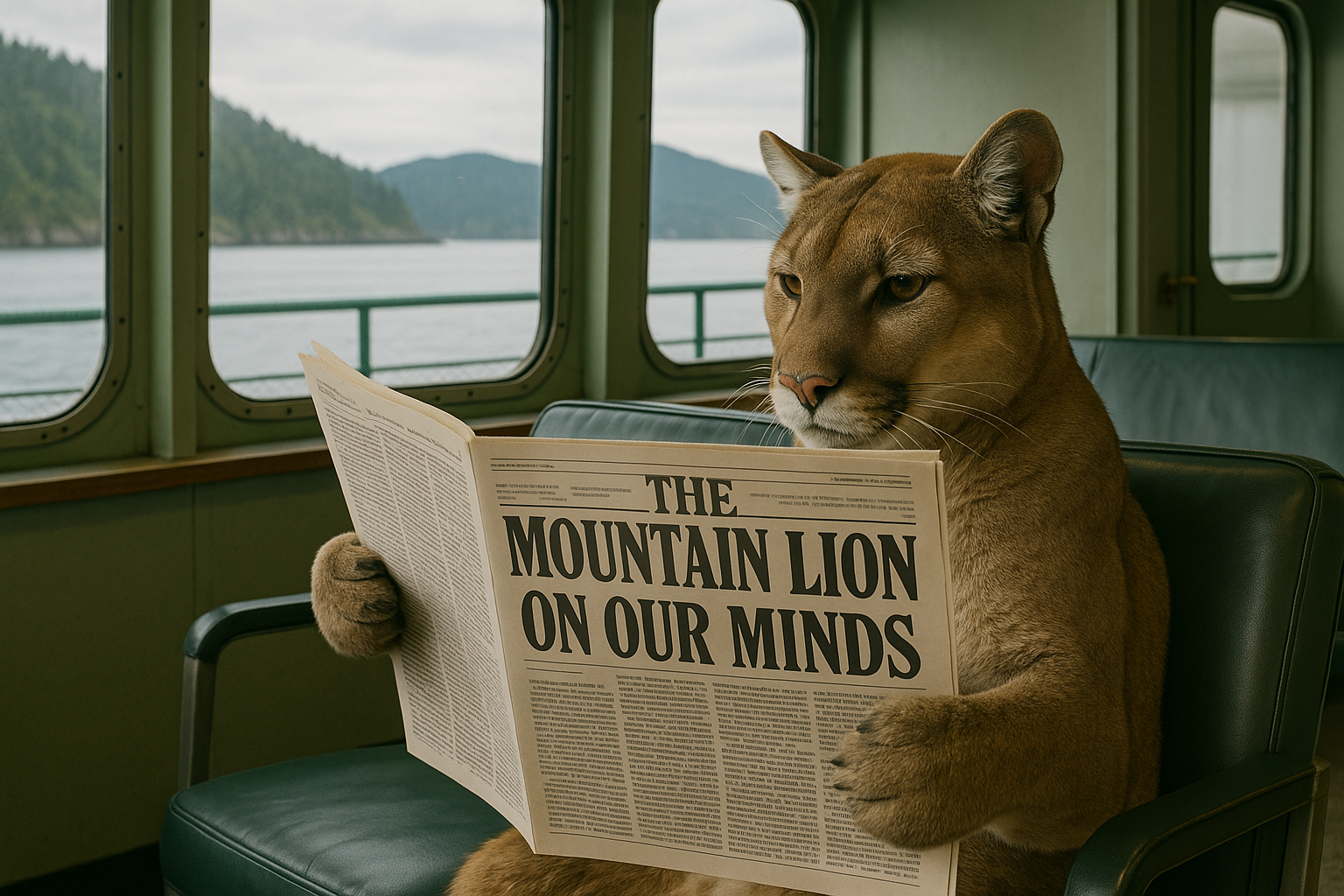 With just two or three unverified sightings under his belt the mountain lion is free to roam anywhere and everywhere on island–mainly into our subconscious. Our collective subconscious. I’m not saying the mountain lion isn’t real, but it does have us all off balance.