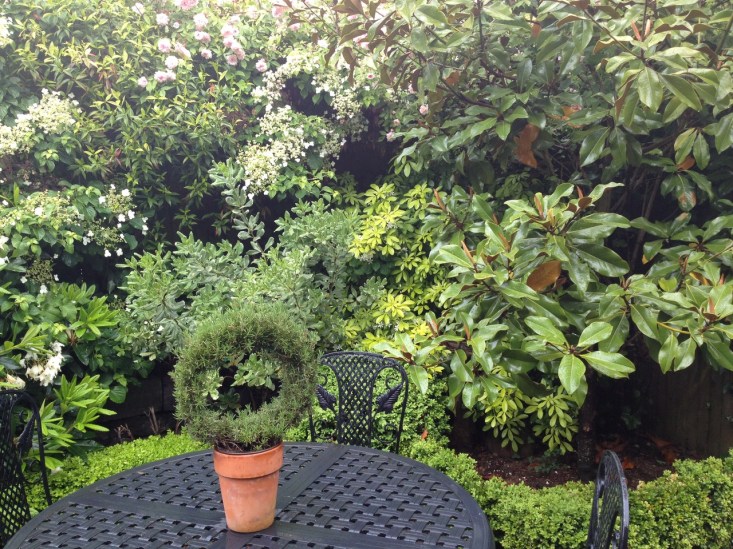 Then we moved west and I didn’t know what else to do but load all my patio furniture into the moving van. It took awhile but finally, six years later, the traditional wrought iron looked well appointed again on the patio of a small English Tudor on Queen Anne hill in Seattle. Every square inch in a walled city garden is precious. The cushions were upholstered in a black & white awning stripe, and a dining table, chairs, and a candelabra, all in black, were added to the collection. Our outdoor room was a green oasis where climbing hydrangea scaled the walls under a pair of magnolia trees, all very reminiscent of New Orleans, Paris, or Nob Hill in Boston.